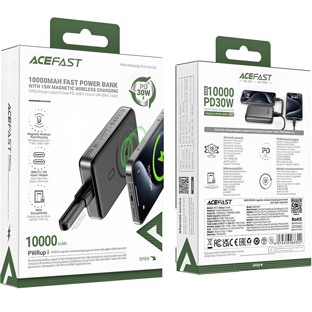 Power Bank Acefast M10 PD30W Magnetic Fast Wireless Charge 10000mAh (6974316283300) Black